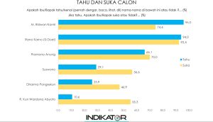 Jika melihat hasil survey ‘Tahu dan Suka Calon’ secara tatap muka, RK 96,0% namun yang suka 74,4%, Rano Si Doel 94,0% yang suka 92,4%, Pramono 66,1% yang sua 70%, Suswono 29,1% yang suka 56,6%, Dharma Pongrekun 25,9% yang suka 46,9%, Kun Wardana 10,6% yang suka 55,3%.