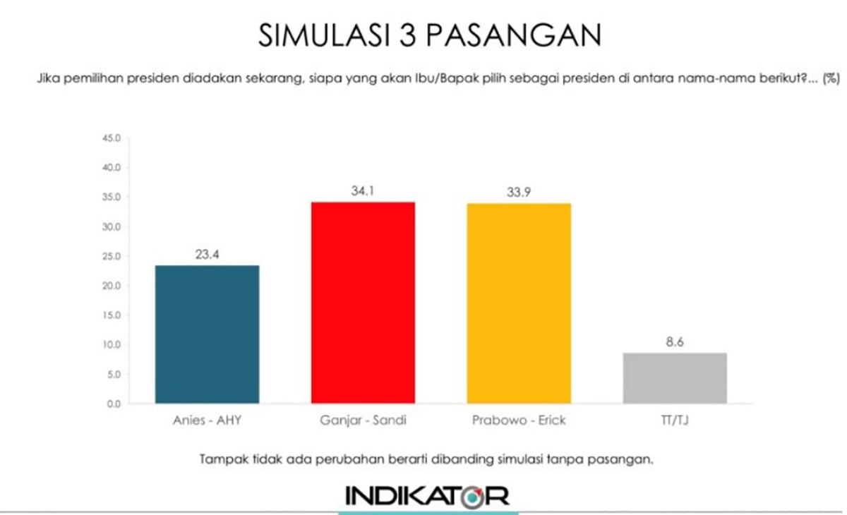 Indikator: Simulasi Prabowo-Erick, Ganjar-Erick Dapat Mayoritas Suara
